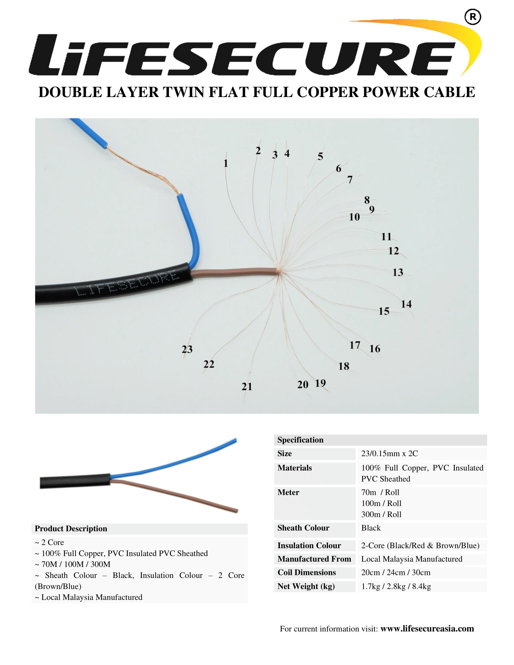 LIFESECURE Double Layer Twin Flat Full Copper Power Cable 300 meter made in Malaysia