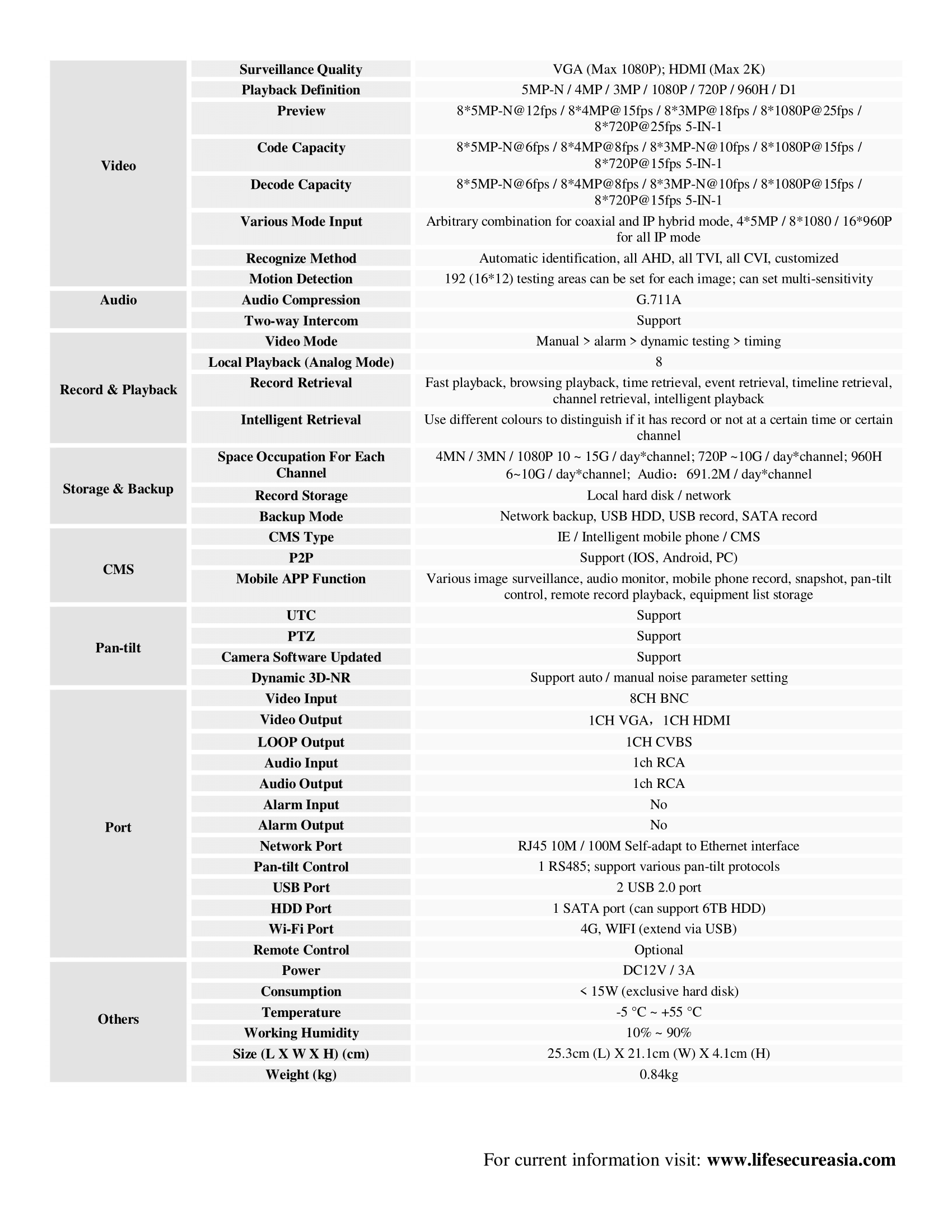 LIFESECURE FHDX-2K8708LS 2K 5MP DVR Recorder