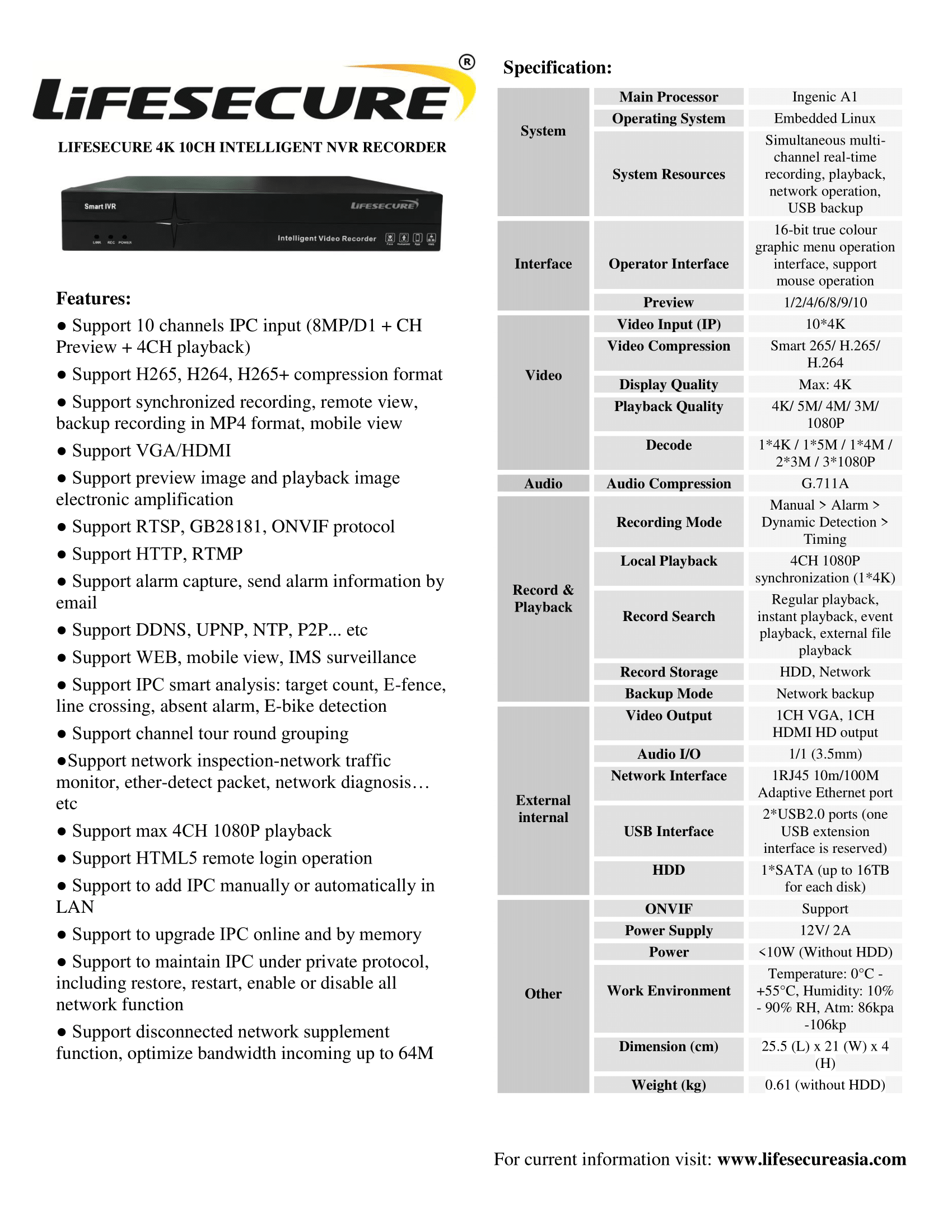 LIFESECURE 4K 10CH INTELLIGENT NETWORK VIDEO RECORDER
